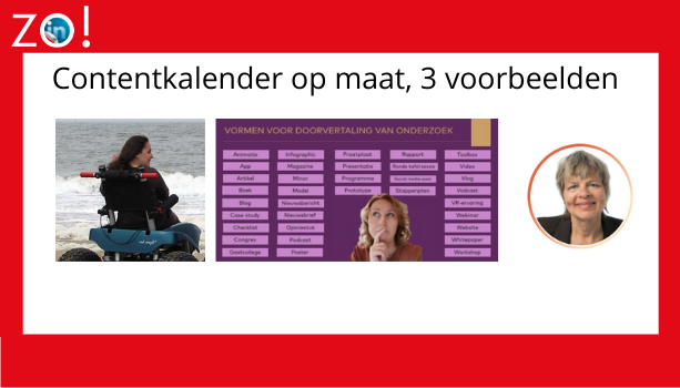 | Van mij krijg je geen format voor een contentkalender. Simpelweg omdat ik niet geloof in one-size-fits-them-all. Wat ís een contentkalender? Een contentkalender is een planning voor wat je wanneer plaatst op social media, op je website of mailt naar je verzendlijst. Werk je met collega’s dan is zo’n kalender onmisbaar. Pas dan kan je goed afstemmen en elkaar versterken. Ook als het alleen om je eigen professionele doelen gaat is het handig om overzicht te houden en je inspiratie niet telkens op het laatste moment te moeten zoeken. Als je een kalender maakt, denk dan aan het volgende: * welke planningstermijn past het beste, per maand, per kwartaal, per jaar * bedenk tevoren wat je streven is, van 1 – 3 keer per week tot eens per maand * blader door oude content die je eerder maakte: wat leent zich om opnieuw te plaatsen, al of niet aangepast * ook handig om terug te kijken: wat heeft echt goede resultaten geleverd (dat is iets anders dan: wat gaf de meeste views en ‘likes’) * markeer momenten door het jaar waar je je content aan op kan hangen. De seizoenen, feestdagen, evenementen van jezelf of anderen, verschijnen van een rapport * de kracht van herhaling is niet te onderschatten, bovendien niet iedereen ziet al jouw posts * wat zijn de problemen waar jij als persoon, als organisatie, als interimmer een oplossing voor biedt? Laat die problemen en jouw visie of een oplossing terugkeren in je content * inspireer door je kennis en je visie * hou het simpel, beter vaker iets korts en eenduidigs Dan die 3 voorbeelden Contentkalender 1 Dit voorbeeld is een stichting die bijdraagt aan het realiseren van een inclusieve samenleving waar mensen met een beperking volwaardig in kunnen participeren. Zij hebben een schat aan fotomateriaal. Over mensen met een rolstoel die de zee in gaan, over toegankelijk van het openbaar vervoer en openbare gebouwen. Over sportactiviteiten. Basis De basis van hun contentkalender is in elk geval iedere week een van die al bestaande foto’s pakken, met tekst erbij over wat er op die foto te zien is en wat de stichting daarmee te maken heeft, heeft gedaan, wat voor visie de gemeente heeft. Zo heb je altijd al wekelijks content. Momenten door het jaar Daarnaast zijn er momenten door het jaar voor deze stichting. Bijvoorbeeld de gemeenteraadsverkiezingen. Een mooie kapstok! Voor content over de structurele knelpunten in de gemeente. Om te kijken wat de verschillende politieke partijen in hun programma hebben. Als de verkiezingen zijn geweest, wat vind je van de uitslag, wat wil je het nieuwe college meegeven en waarom? Contentkalender 2 Deze klant is Cindy van Doornik en zij is specialist onderzoekscommunicatie, en dan vooral onderzoek in het HBO. Basis Cindy publiceerde een lijst met 35 vormen van doorvertaling van onderzoeken. En op basis van die lijst kan zij een eindeloze voorraad van posts maken, waarin ze telkens weer een vorm uitlegt, al dan niet met een concreet voorbeeld erbij. Momenten door het jaar Cindy kan haar kalender aanvullen met actualiteit. Bijvoorbeeld over de communicatie van onderzoek in de huidige pandemie. Ze kan in haar jaarplanning kijken naar seizoensgebonden onderzoek, ze kan inhaken op de begrotingscyclus van het onderwijs. En ook wellicht is het ook voor Cindy interessant om de gemeenteraadsverkiezingen mee te nemen in haar planning. Contentkalender 3 Ook voor mijn bedrijf werk ik vanuit een contentkalender. * de basis is mijn maillijst. Ik streef naar wekelijks een mail, en de ene week is dat dan een echte LinkedIntip of vernieuwing, de andere week is het meer algemeen over LinkedIn slim inzetten. * ik heb altijd wat blogs ‘op voorraad’, omdat ik ongeveer eens per 2 maanden een blogdag volg bij Paula Brummelkamp * ik streef naar 2 – 3 posts per week op LinkedIn. Dat zijn aangepaste versies van mijn mails, ervaringen met klanten, en tips over LinkedIn * in mijn planning hou ik rekening met jaarlijks terugkerende onderzoeken over het bereik van LinkedIn en het algoritme van LinkedIn. * als ik met vakantie ben, zet ik wel wat mails klaar en post ik niet of nauwelijks op LinkedIn * voor 2022 heb ik al meerdere eerder verschenen blogs geselecteerd die ik ga aanpassen en opnieuw ga plaatsen, en/ of mailen * ik plan per maand, dat past qua cyclus het beste bij mij. En nu jij? Een contentkalender hoeft echt niet ingewikkeld te zijn. Ik raad het je wel aan om te doen. Begin eens met een maand. Of met het voornemen om het telkens na een bepaald moment te iets te plaatsen op social media. Bijvoorbeeld als je recruiter bent na een succesvolle plaatsing. Als je websitebouwer bent na het lanceren van een nieuwe website. Zo help je jouw netwerk om te blijven herinneren aan wat jij biedt en wanneer ze aan jou kunnen denken. |